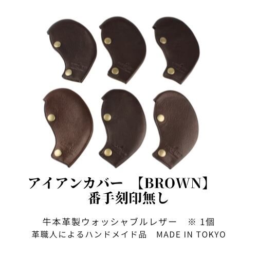 アイアンヘッドカバー BROWN「牛本革」ウォッシャブルレザーは、ゴルフのスタイルを引き立てる洗練されたアイテムです。高品質な牛本革を使用しており、しっとりとした手触りと上品な光沢が魅力的。ウォッシャブルレザーのため、手入れも簡単で、いつでも清潔に保つことができます。