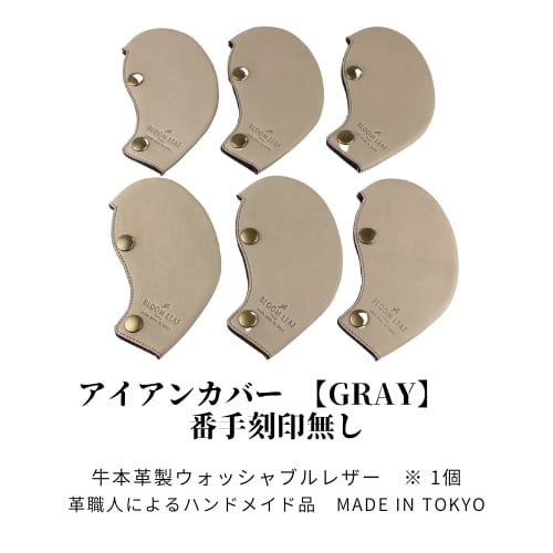アイアンヘッドカバー GRAY「牛本革」ウォッシャブルレザーは、ゴルフのスタイルを引き立てる洗練されたアイテムです。高品質な牛本革を使用しており、しっとりとした手触りと上品な光沢が魅力的。ウォッシャブルレザーのため、手入れも簡単で、いつでも清潔に保つことができます。
